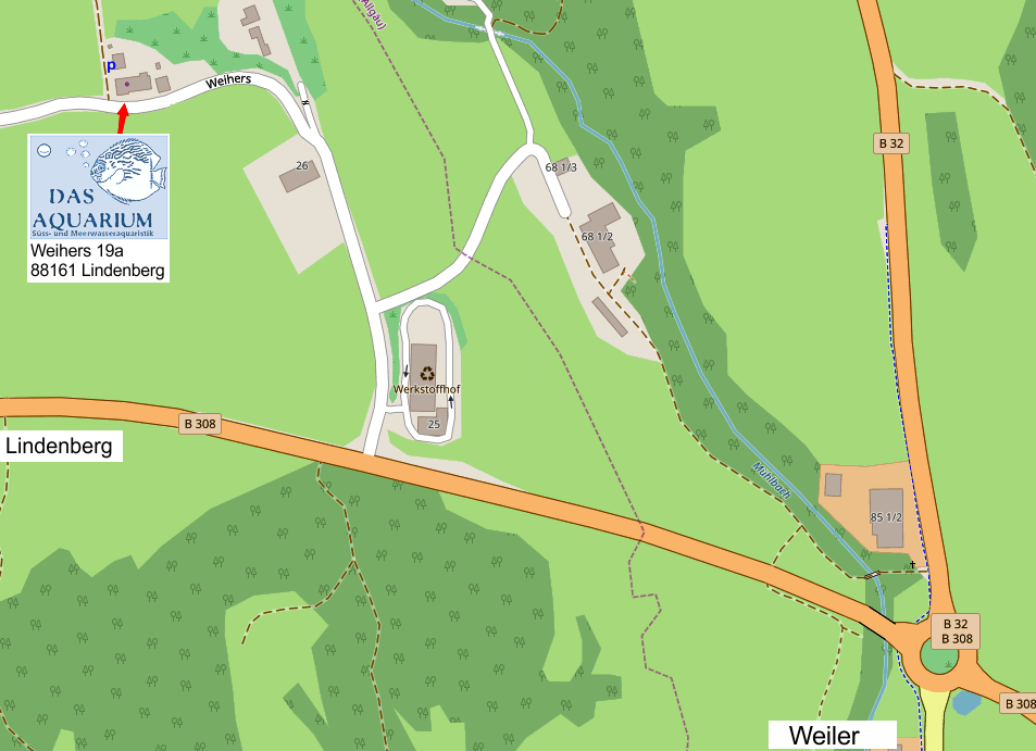 Von der B308 kommend richtung Werkstoffhof abbiegen, Straße folgen, links kleinen Berg hinauf und schon sind Sie in Weihers 19a angekommen.